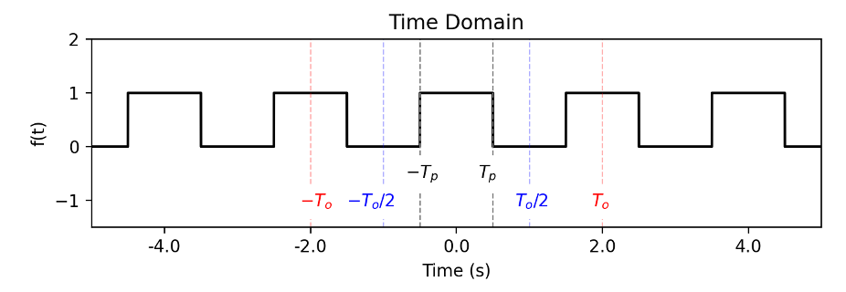label4 = axes[0].text(-(To/2)-0.5, -1.2, '$-T_{o}/2$', color='blue', ha='left', va='bottom', backgroundcolor='white')